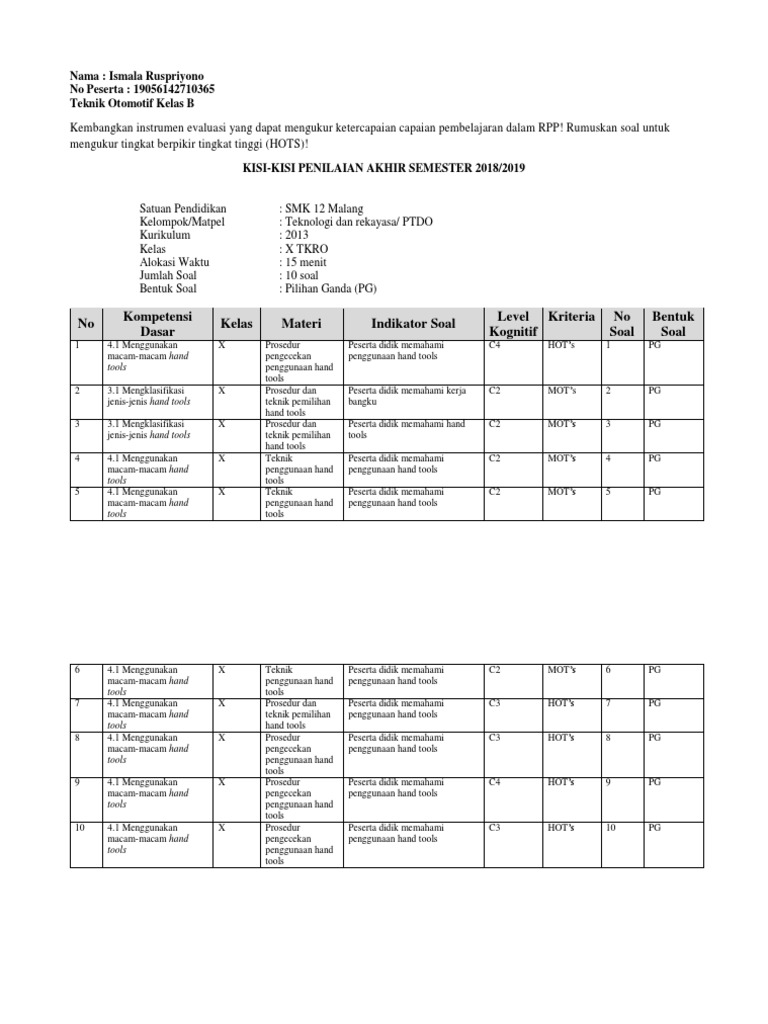 Soal Pdto Hand Tools / Soal Pdto X Cetak Docx Lembaran Soal Evaluasi Belajar Bersama Mata Pelajaran Pekerjaan Dasar Teknik Otomotif Semester I Ganjil Program Keahlian Teknik Course Hero / Materi pdto hand tools (peralatan tangan)semester 1 kelas10