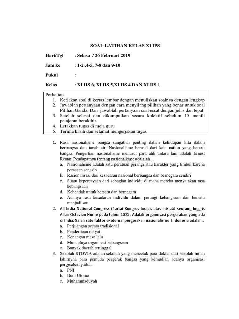 Soal Sejarah Kebangkitan Nasional Kls Xi 3 Pdfcoffee Com from pdfcoffee.com Melakukan perdagagan dengan belahan dunia yang lain c. Jul 01, 2021 · terdapat 25 butir soal sebagai bahan latihan. Sedangkan jenis soal yang kami sediakan dalam latihan soal bab pergerakan nasional ini terbagi menjadi 4 jenis soal, yaitu soal pilihan ganda/ pilgan, soal essay, soal uraian, dan soal tugas. Apabila kita merasa bangga sebagai bangsa indonesia, maka sikap kita adalah. Jan 13, 2021 · soal pilihan ganda ppkn semangat kebangkitan nasional tahun 1908. Menjadi alat pemersatu para pemuda. Rusaknya ekonomi eropa akibat peperangan dan berkembangnya teknologi pelayaran d. Soal yang kami sediakan sudah dilengkapi dengan kunci jawaban, kecuali soal tugas.